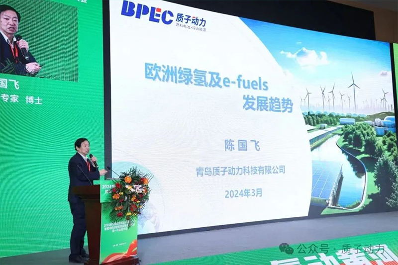 會上,質子動力董事長陳國飛博士就歐洲綠氫及e-fuels的發(fā)展趨勢進行了系統(tǒng)分享,話題破局氫能發(fā)展中的問題,探討氫能產(chǎn)業(yè)創(chuàng)新發(fā)展,聚焦“雙碳”背景下氫能應用潛力及產(chǎn)業(yè)化路徑等前沿熱點,共商發(fā)展謀合作。